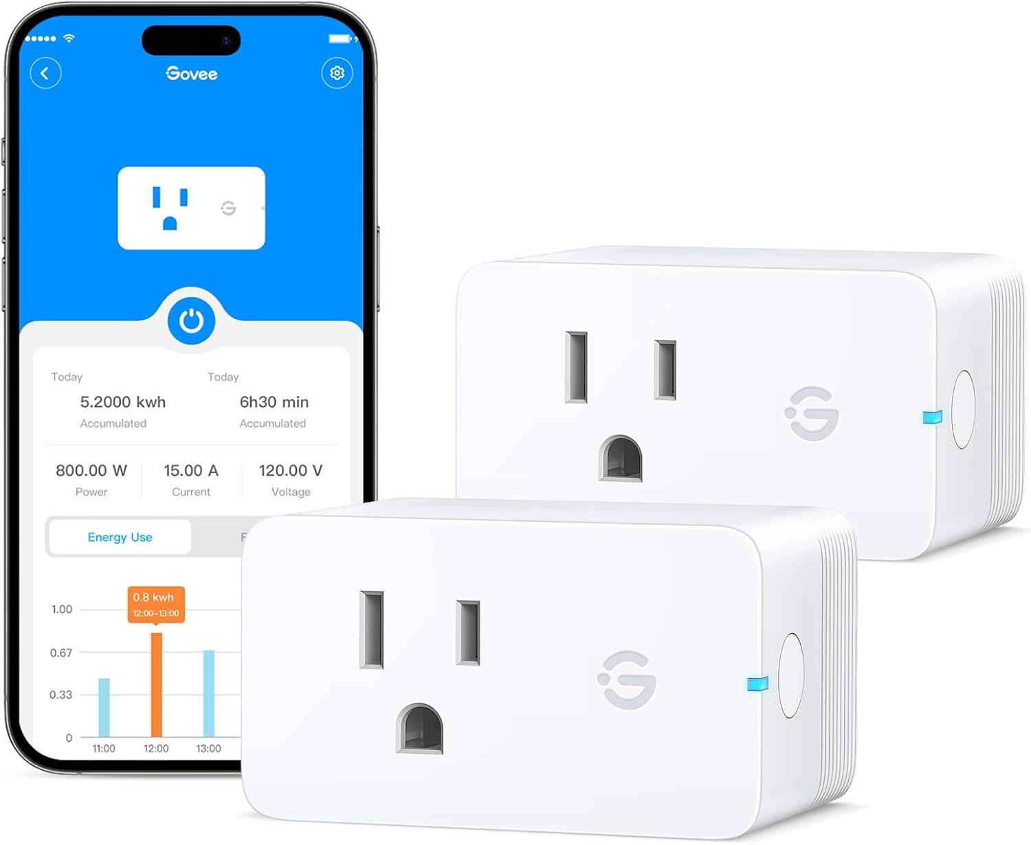 Govee Smart Plug with Energy Monitoring, WiFi Bluetooth Plug Work with Alexa and Google Assistant, 15A Smart Outlets with Timer & Group Controller, No Hub Required, ETL&FCC Certified for Home, 2 Pack